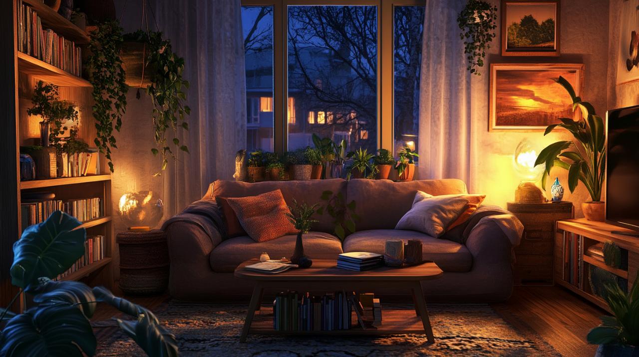 L'éclairage représente l'élément le plus transformateur dans la création d'une atmosphère cocooning. Multiplier les sources de lumière pour créer une ambiance chaleureuse permet de moduler l'intensité lumineuse selon les moments de la journée et vos activités. Abandonner l'éclairage central unique au profit de plusieurs lampes d'appoint, lampadaires et guirlandes lumineuses offre une flexibilité incomparable pour adapter l'ambiance à vos besoins.